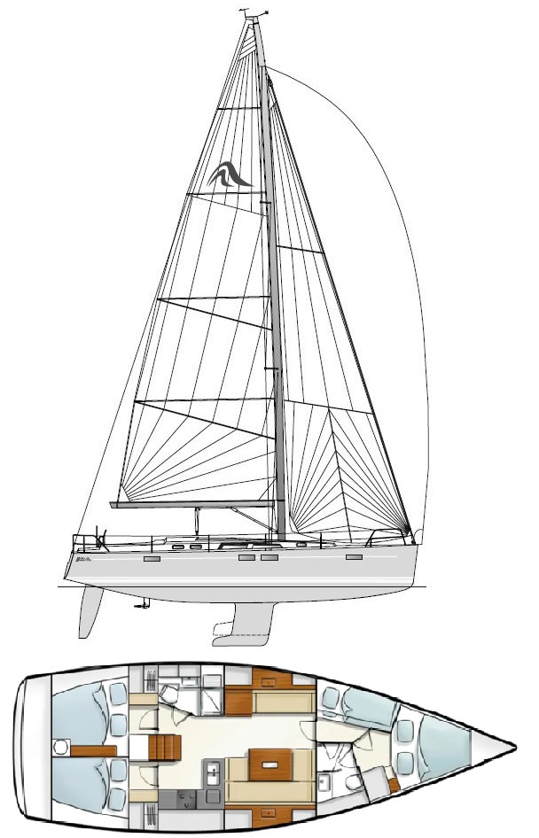 A fast and modern sailing yacht suitable for offshore cruises. Innovating layout with 4 double cabins, spacious galley and a nice saloon.